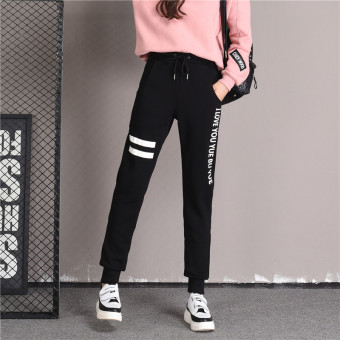 Online Autumn and Winter Korean-style Plus velvet student sweatpants athletic pants (Black Plus velvet 0086) in Philippines