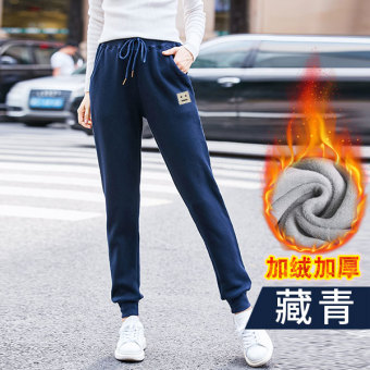 Shopping Peledress versatile printed student LOOESN casual pants Plus velvet sports pants (Dark blue color winter style Plus velvet thick) in Philippines