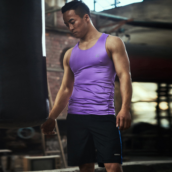 Men sleeveless vest round neck running fitness clothing sports clothing (Purple) Online Shopping in Philippines