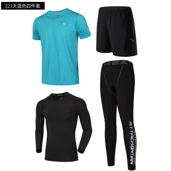 Shopping Men fitness room quick-drying slim fit clothes running clothes (221 sky blue + 707 black + 23017 black + 103 black to send arm package) in Philippines